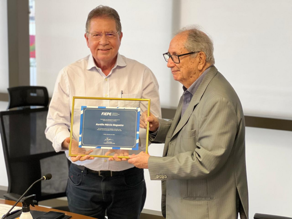 A reunião contou ainda com uma homenagem ao empresário Aurélio Marcio Nogueira, pela atuação ao longo de mais de duas décadas de serviços prestados ao Sistema FIEPE, como dirigente da Federação e presidente do CIEPE. “Sua presença foi marcante na defesa de uma agenda voltada à competitividade industrial, ao diálogo com o poder público e à construção de um ambiente econômico mais favorável ao desenvolvimento de Pernambuco”, destacou o presidente Bruno Veloso. Colaboradora do Sistema FIEPE há 45 anos, Valdênia Bittencourt também recebeu homenagem e um pin comemorativo pelo tempo de serviço.